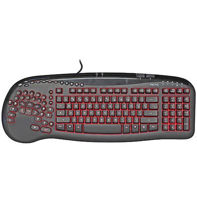 The SteelSeries Merc Stealth gaming keyboard features 34 dedicated gaming terrain keys, making it easier and more intuitive than ever to walk, run, jump, crouch and move directionally in games. The gaming terrain keys, tilted at an 11 degree angle, are ergonomic and comfortable even during long gaming sessions. The keyboard features three different illumination colors (blue, red and purple), which can be set to four different illumination modes (subtle, ambient, intense and off). The keyboard features two USB 2.0 ports, gold-plated microphone and headset jacks all connected through a gold-plated USB connector. All keys on the keyboard can be programmed with the powerful SteelSeries Z Engine software, allowing for programmable keys and easy to use drag-and-drop macro creation.